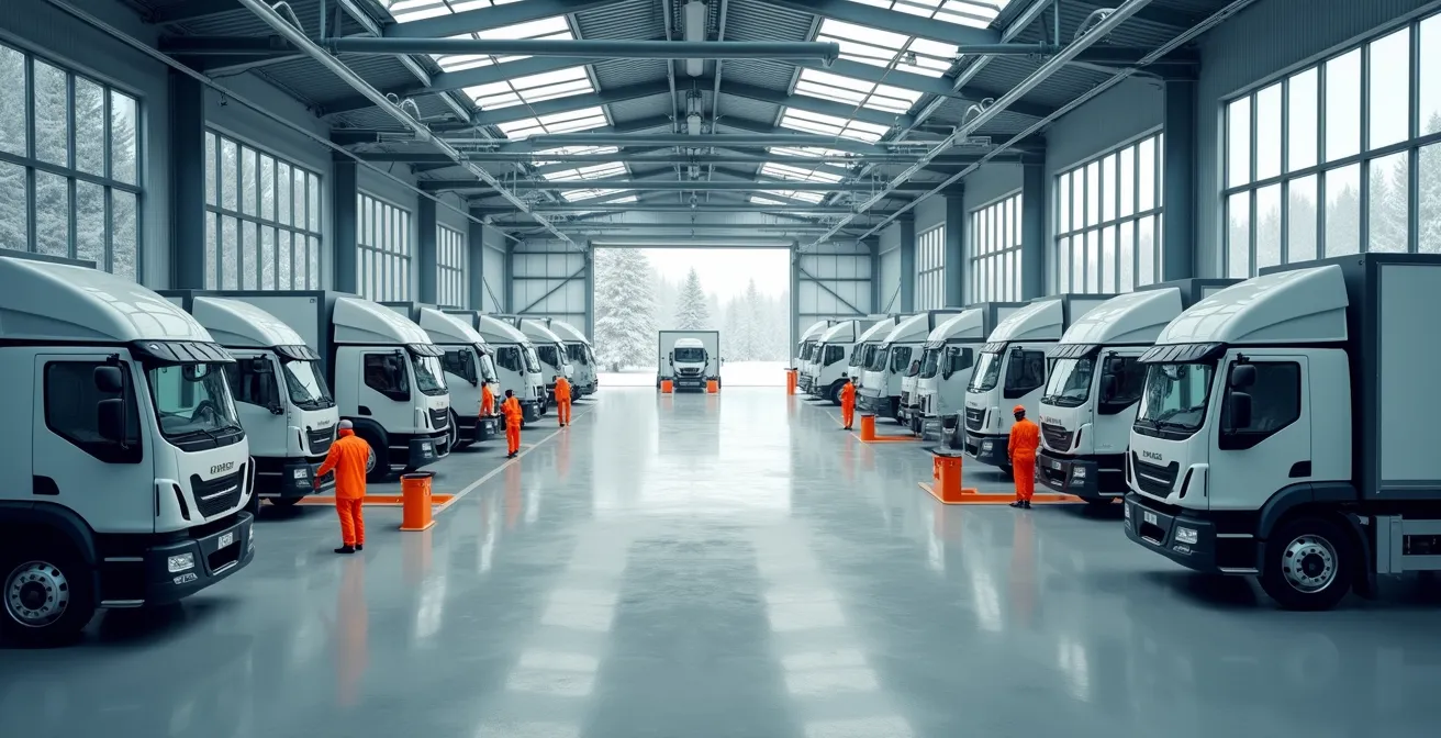 Les experts de Service Certifié recommandent un protocole d’entretien préventif rigoureux pour les flottes québécoises. Leur approche va au-delà du simple lavage : ils préconisent un démontage et un nettoyage annuel des panneaux de protection des batteries. Ces panneaux agissent comme des pièges, accumulant une mixture corrosive de sel, de calcium et de saletés. Un programme d’inspection tous les 12 000 km, couvrant 40 points critiques, permet de détecter et de corriger ces problèmes avant qu’ils ne causent une défaillance majeure, protégeant ainsi l’investissement et garantissant la disponibilité des véhicules durant la saison la plus exigeante.